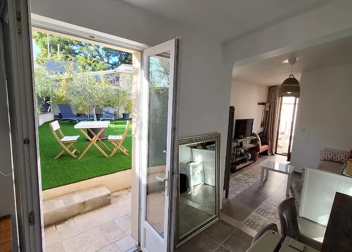 דירת דירות Saint-Raphaël Le Mazet מציעה מטבח וכמו כן גם חדרים עם חדר אוכל, ספה וטלוויזיה עם מסך שטוח וערוצי לוויין. Rade d'Agay שוכן במרחק של 1.5 ק"מ על דירה, בזמן שCap du Dramont זה כ-0.8 ק"מ משם.